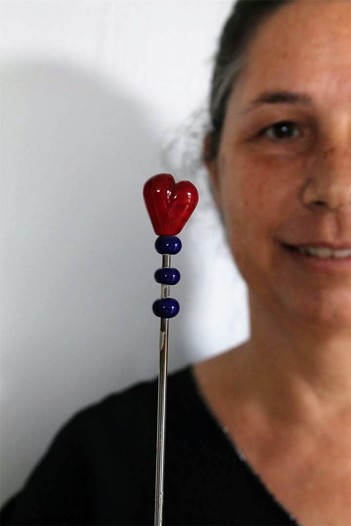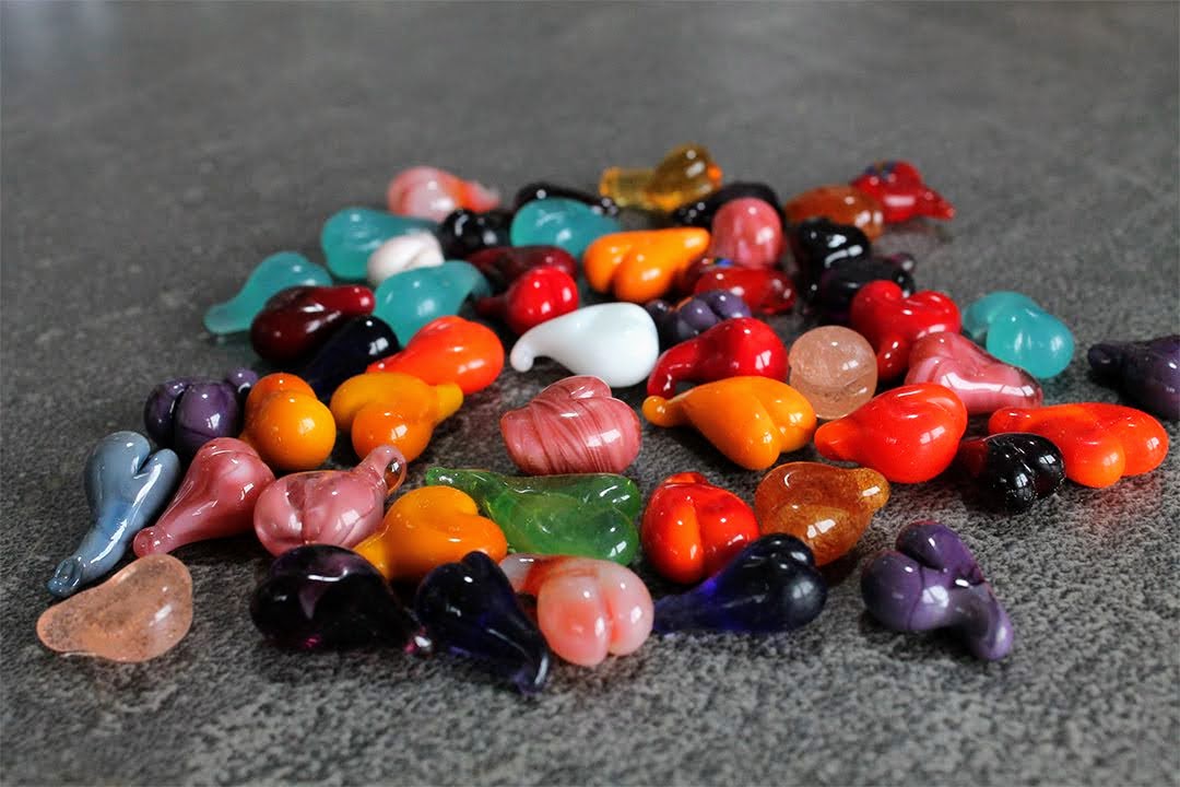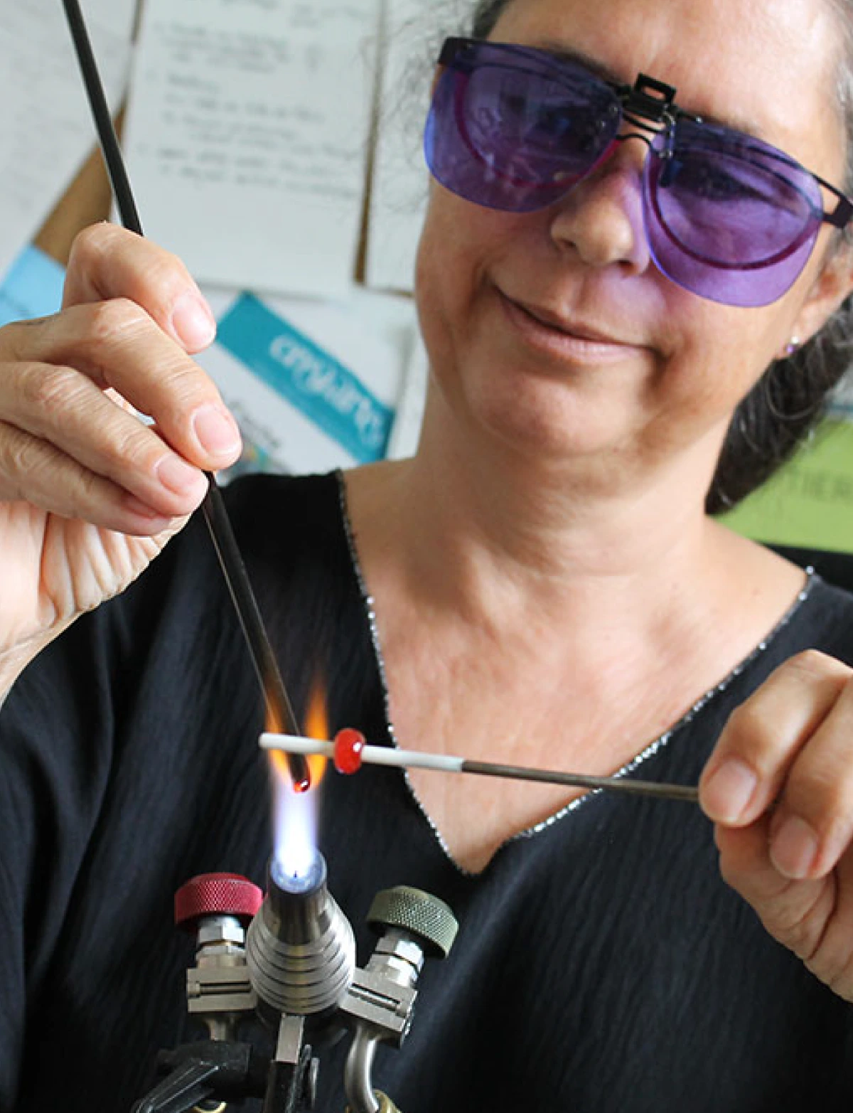 Bei der Herstellung der Glasperlen wird das am Brenner geschmolzene Glas in die gewünschte Form gebracht. Je nach Kombination der Farben und Formen ergibt es auch spezielle Effekte.