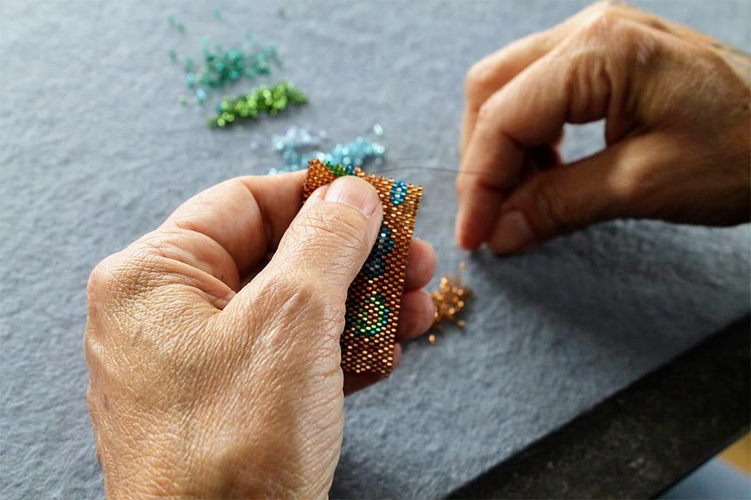 Mit den Rocailles gilt es die richtigen Fädeltechniken, Farben und Muster zu finden.